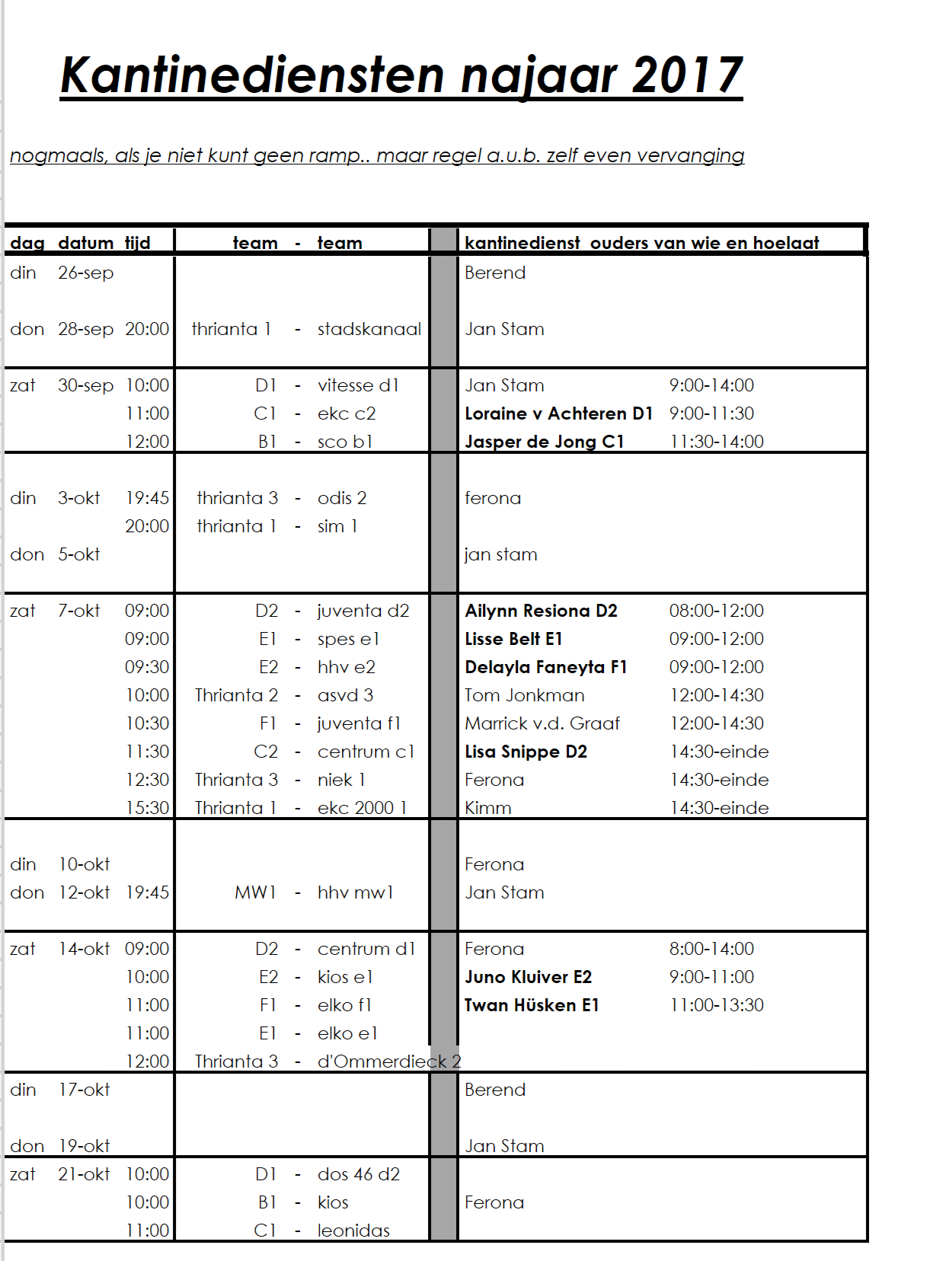 | 14-apr f1 & e2 10.00 Ferona 9.00 13.30 f2 & e1 11.00 Fay e2 9.00 11.00 d1 12.00 Nadine d1 11.00 13.00 21-apr d3 & d1 10.00 Tom.Jonkman 9.00 12.00 d2 11.00 Rebecca d1 9.00 12.00 c2 12.00 Jens/Nathalie c2 12.00 15.00 c1 13.00 Amber c1 12.00 15.00 2e 14.00 Ingrid 15.00 einde 1e 15.30 Ferona 15.00 einde 26-apr mw 19.45 Jan Stam 20.00 einde 28-apr 2e 14.00 Ingrid 13.00 einde 1e 15.30 Ferona 13.00 einde |